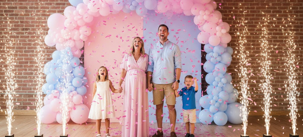 Once the secret is out, celebrate in style with a perfectly timed confetti blast in pink or blue. Confetti creates that joyful, high-energy finish and looks incredible in photos and slow-motion videos.