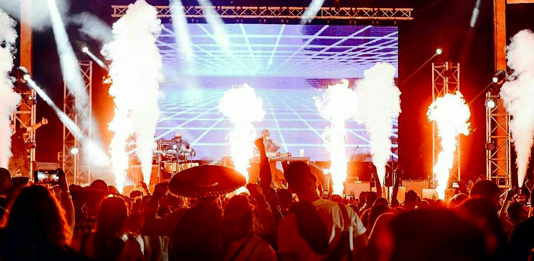 When the cue hits, the flames rise and the crowd feels it instantly.